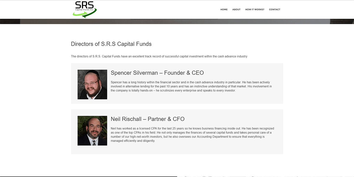 The directors of S.R.S. Capital Funds have an excellent track record of successful capital investment within the cash advance industry.
