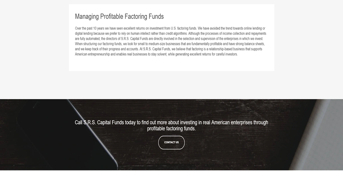 S.R.S. Capital Funds Inc. is a leading capital investment firm that offers modest rates of return for prudent investors.