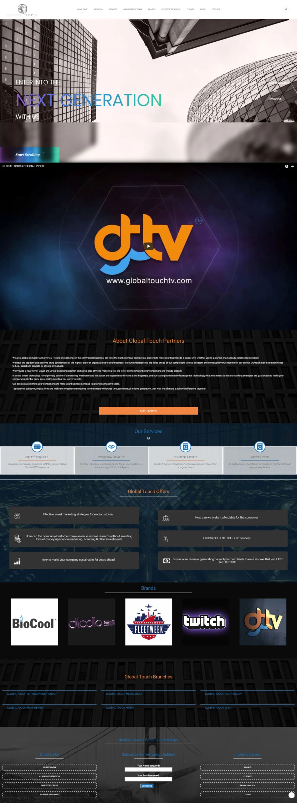 Global Touch TV (GTTV) is Global Touch Partners LLC own 24/7 online broadcasting network, that have a tier one infrastructure global network to stream live broadcast (OTT) over- the- top via the Internet.
